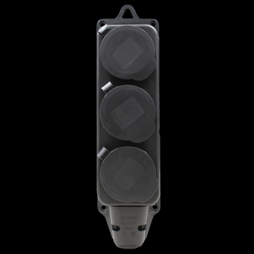 Каучук розетка 2-ая с заземлением Код: 500-704 Механизм: каучук Техописание: 16A, 230V, IP 44 Количество в коробке шт: 50
