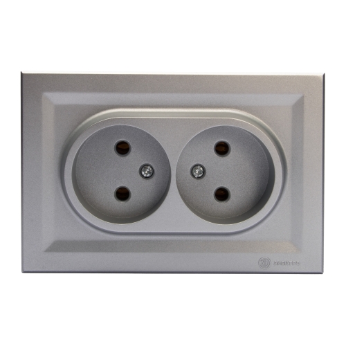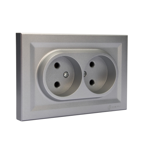 №200-200-98 EVEREST серебро розетка двойная б/з (8/64) Код: 200-200-98